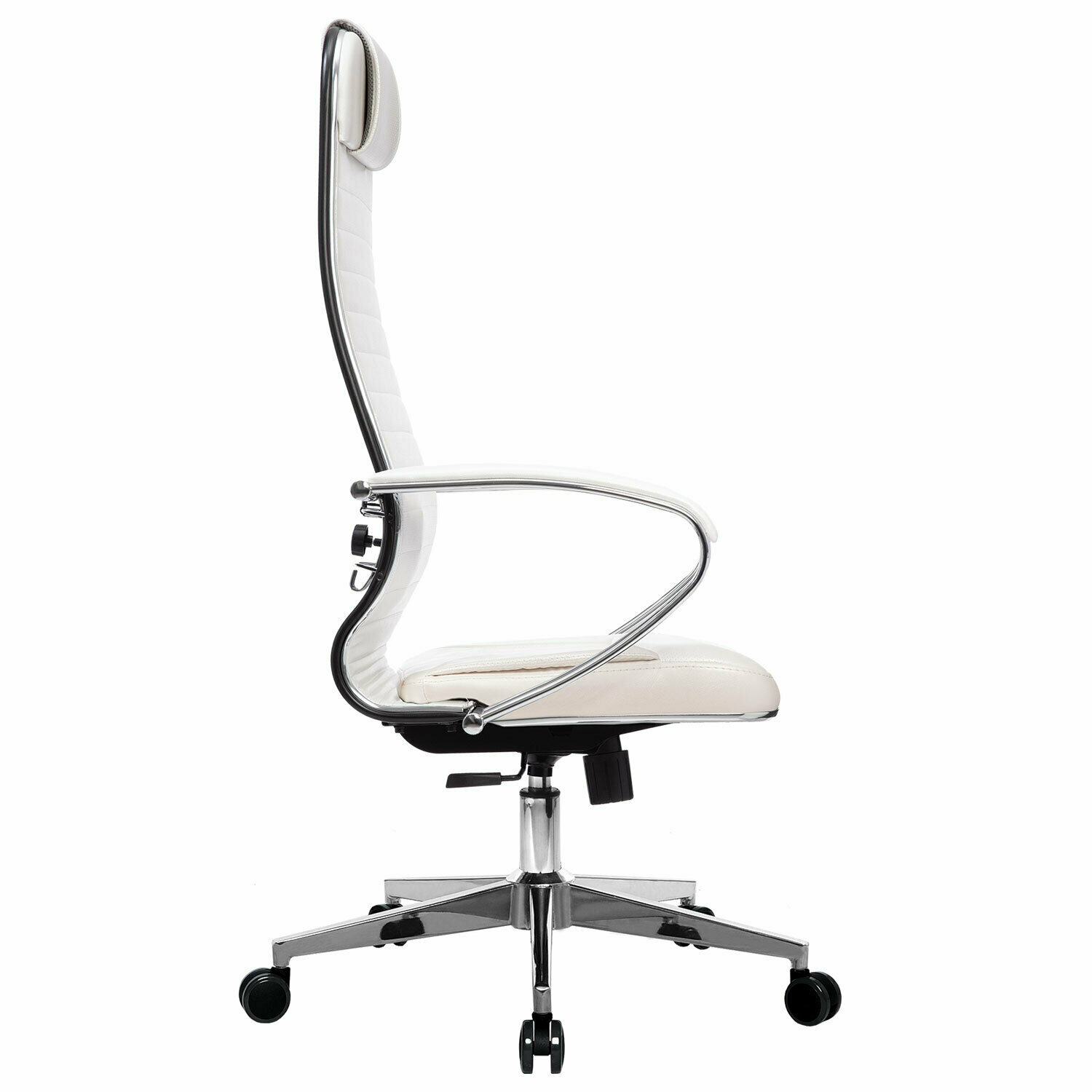Кресло офисное метта К-6 хром, кожа, сиденье и спинка мягкие, белое, ш/к 64551