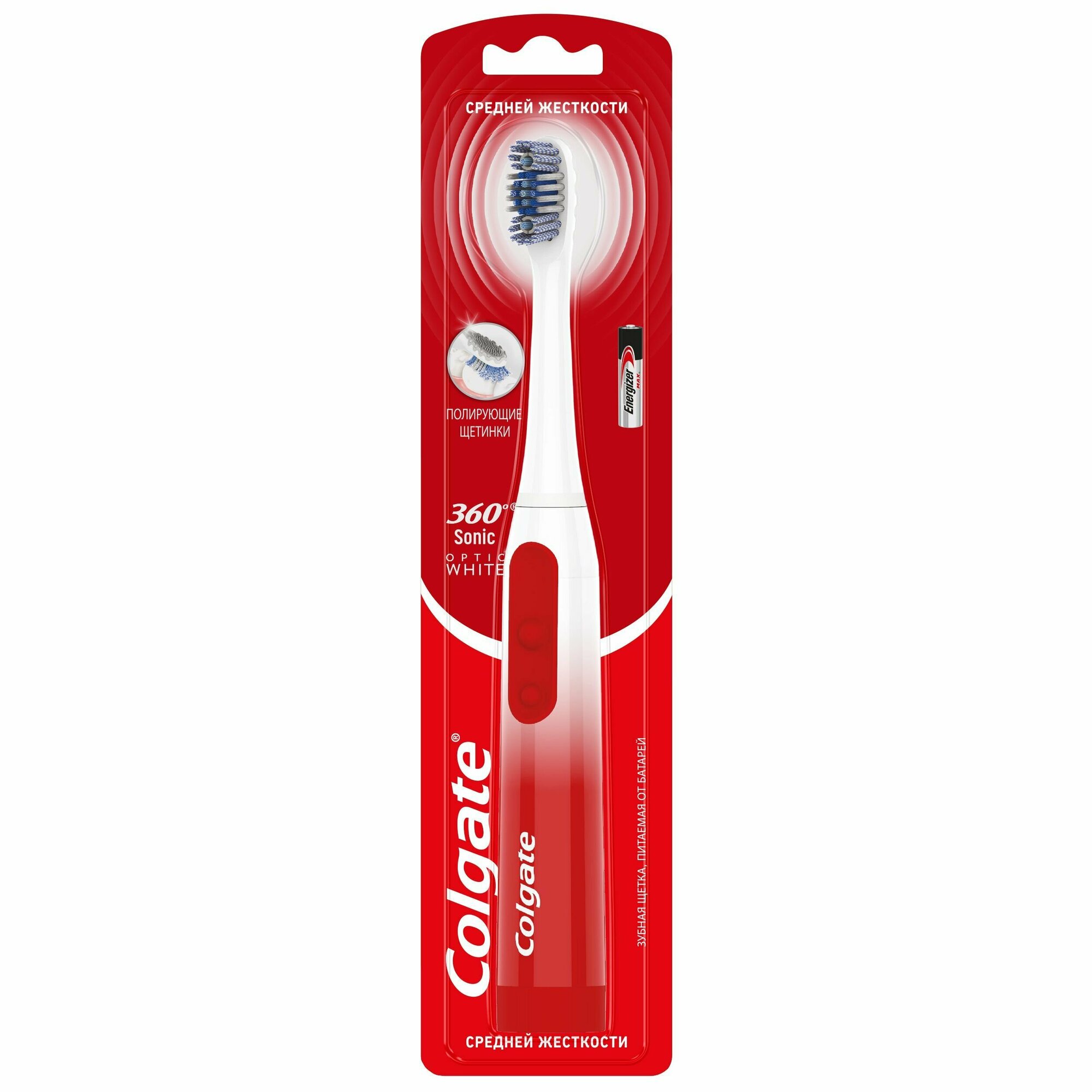 Электрическая зубная щетка Colgate 360º Sonic Optic White отбеливающая, на батарейках, средняя