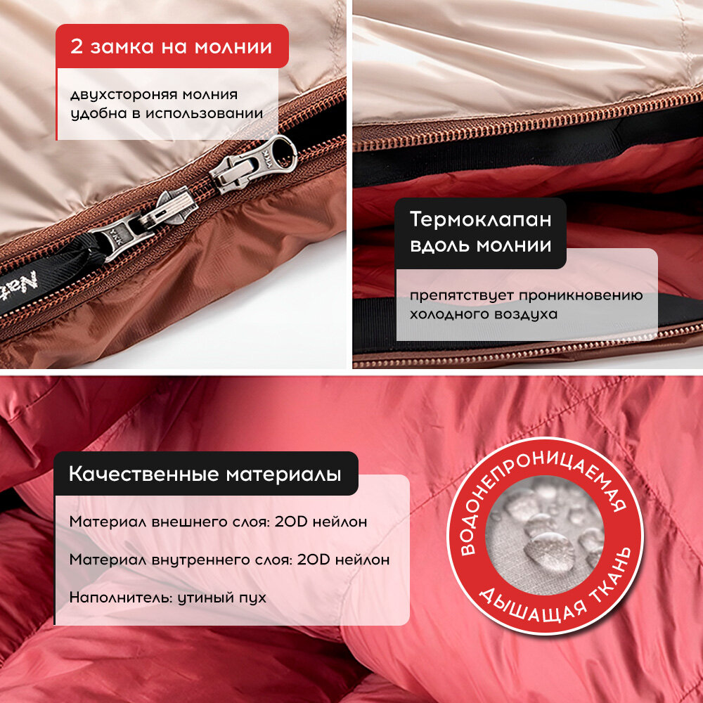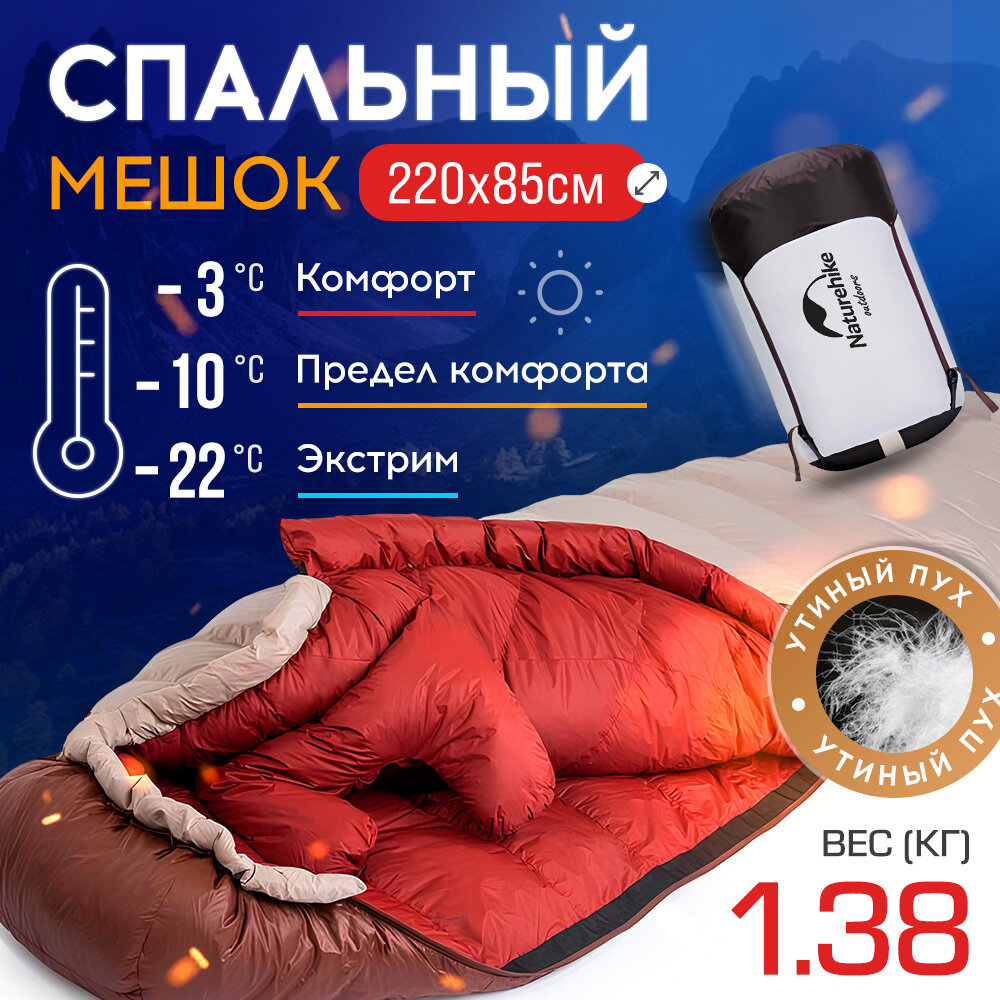 Мешок спальный Naturehike SnowBird, 220х85 см, XL (800G), (правый) (ТК: -3°C), серый/коричневый интересное:
