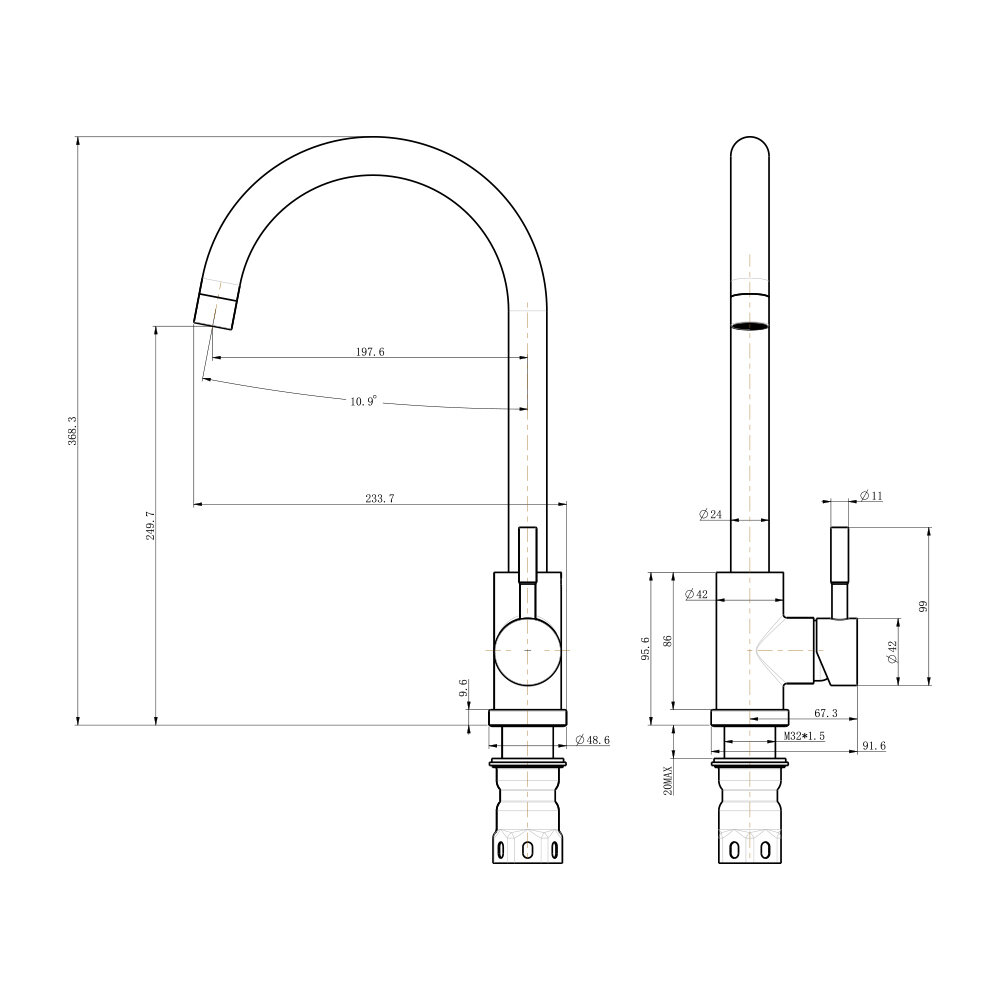 Смеситель для кухни OLIVE'S BALEAR, нержавеющая сталь, чёрный, 25 см