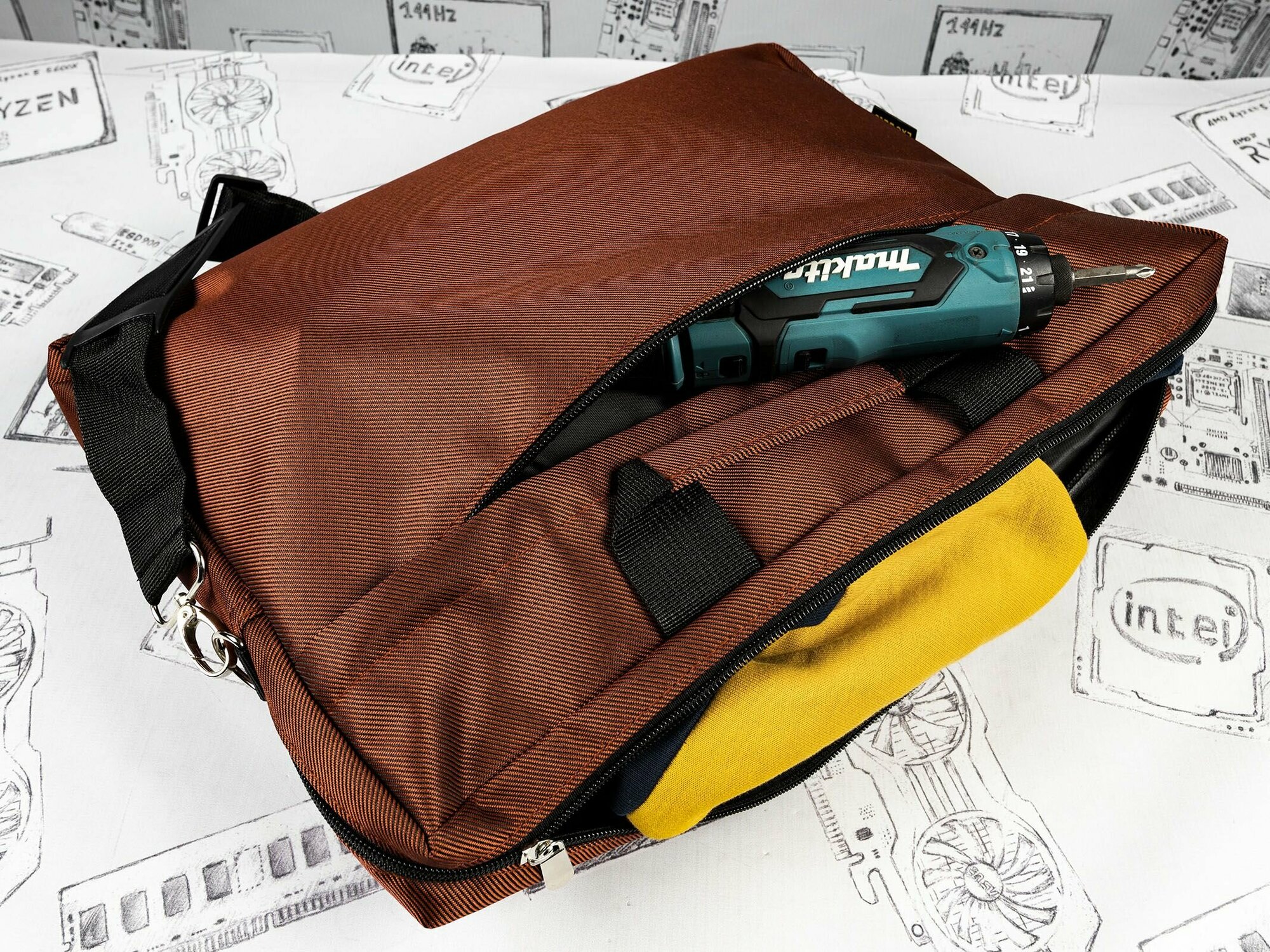| Минусы: | Слишком мало места, влезает стандартный ноутбук и мышь, зарядка влезает с трудом |