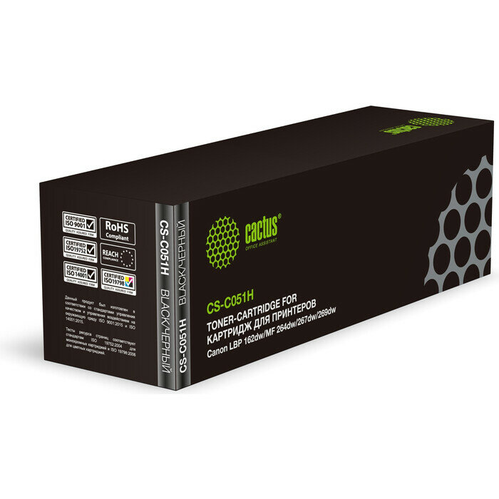 Тонер-картридж CACTUS (CS-C051H) для Canon LBP 162dw/MF 264dw/267dw/269dw, черный, ресурс 4100 страниц, 363372