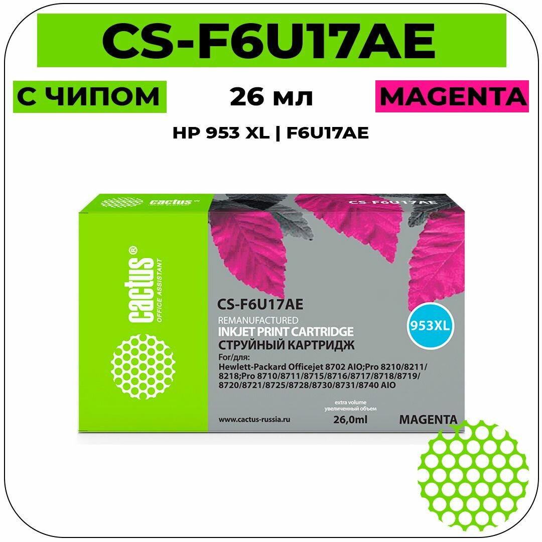 Картридж струйный Cactus CS-F6U17AE 953XL(есть ограничения по прошивке) пурпурный (26мл) для HP OJ Pro 7740/8210/8218/8710/8715