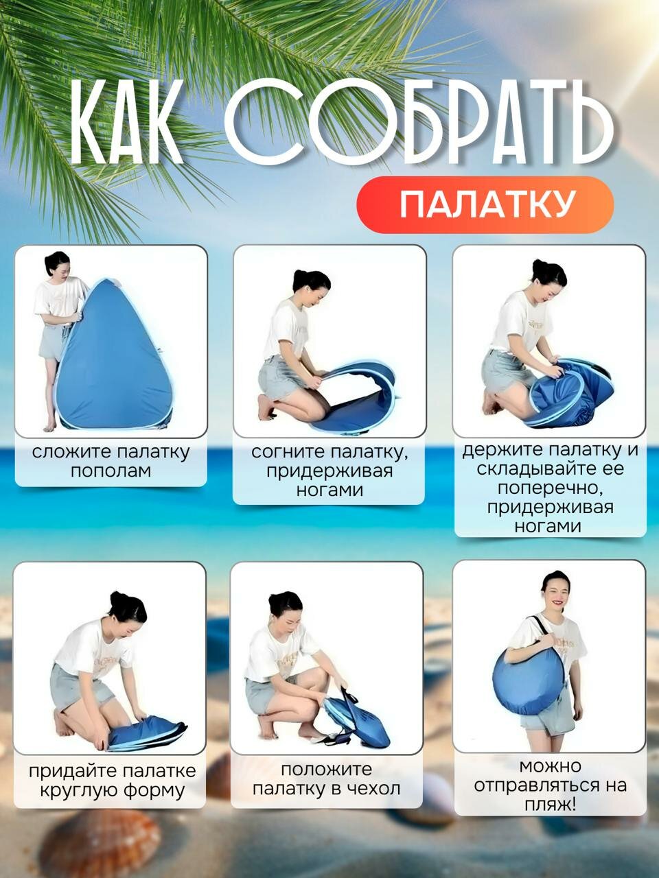 Летняя пляжная палатка тент от солнца 3-х местная автоматическая 200х165х130 см интересное:
