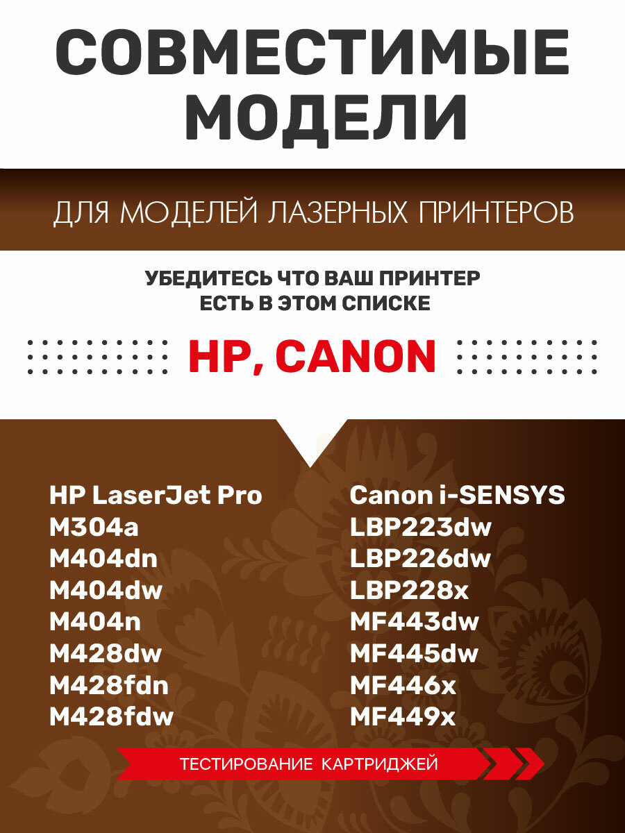 | Совместимые принтеры | HP LaserJet Pro M304/M304a/M404dn/M404dw/M404n/M428dw/M428fdn/M428fdw; Canon LBP 223dw/223/226dw/226/228/228x, MF 443dw/445dw/446x/449x |
