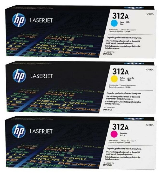 Kартриджи HP 312A, Упаковка 3 шт., Оригинальные лазерные картриджи HP LaserJet, Голубой/Пурпурный/Желтый (CF440AM)