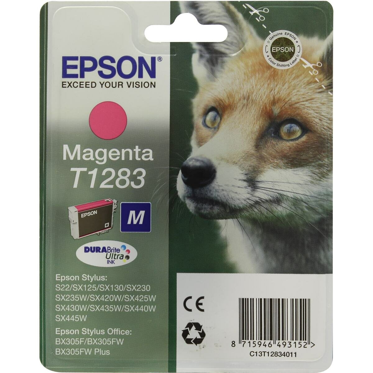 Картридж Epson T1283 - C13T12834011 оригинальный струйный картридж Epson (C13T12834011) 160 стр, пурпурный