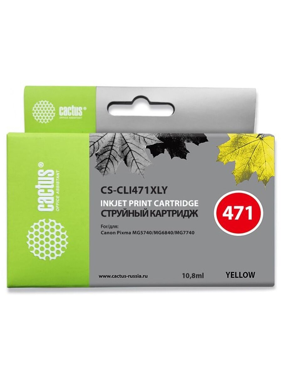 Купить Картридж струйный Cactus CS-CLI471XLY CLI-471XL Y желтый (10.8мл) для Canon TS5040/MG5740/MG6840/MG7740
