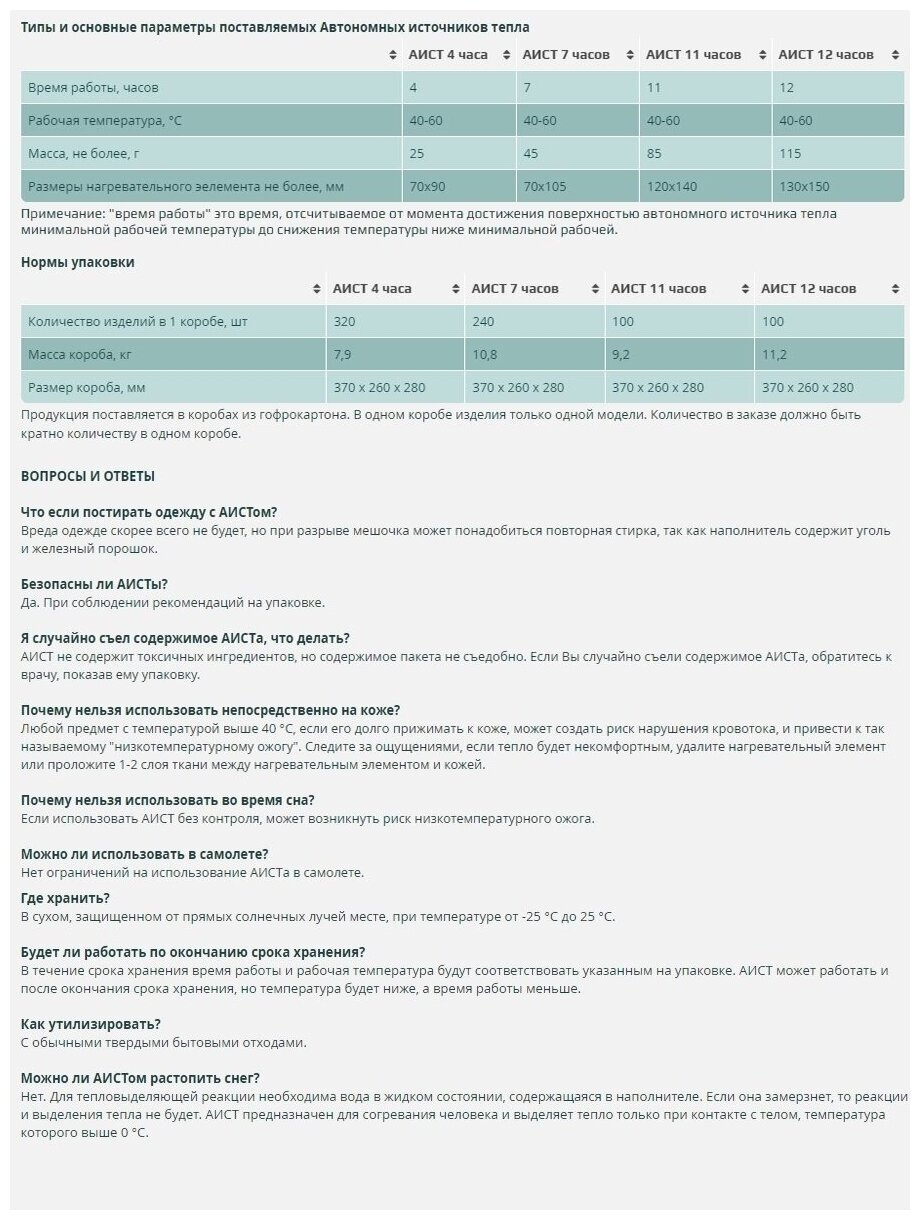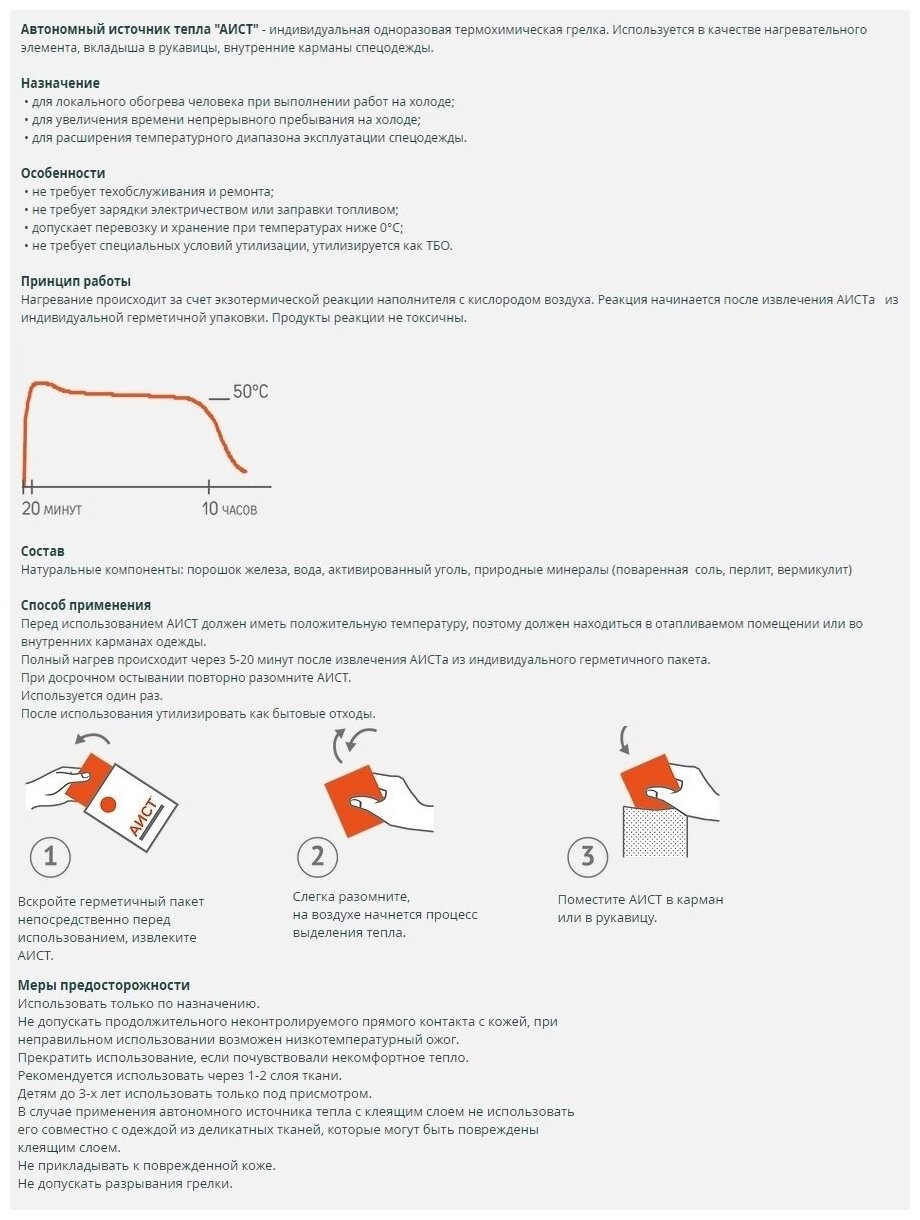 Автономный источник тепла "аист" грелка 7 часов - 20 штук, одноразовая грелка интересное: