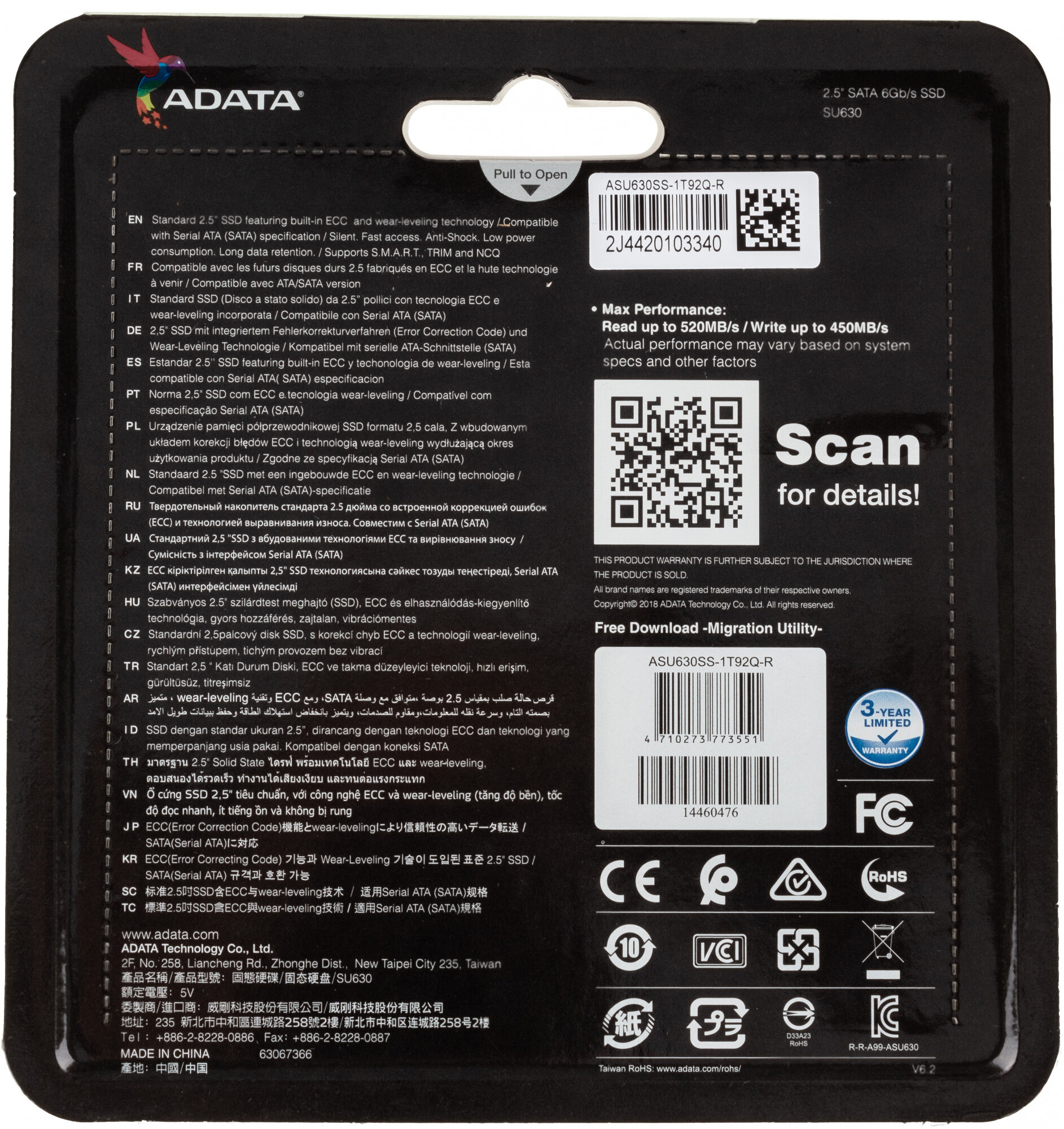 Твердотельный накопитель ADATA SSD Ultimate SU630, 1920GB (ASU630SS-1T92Q-R)