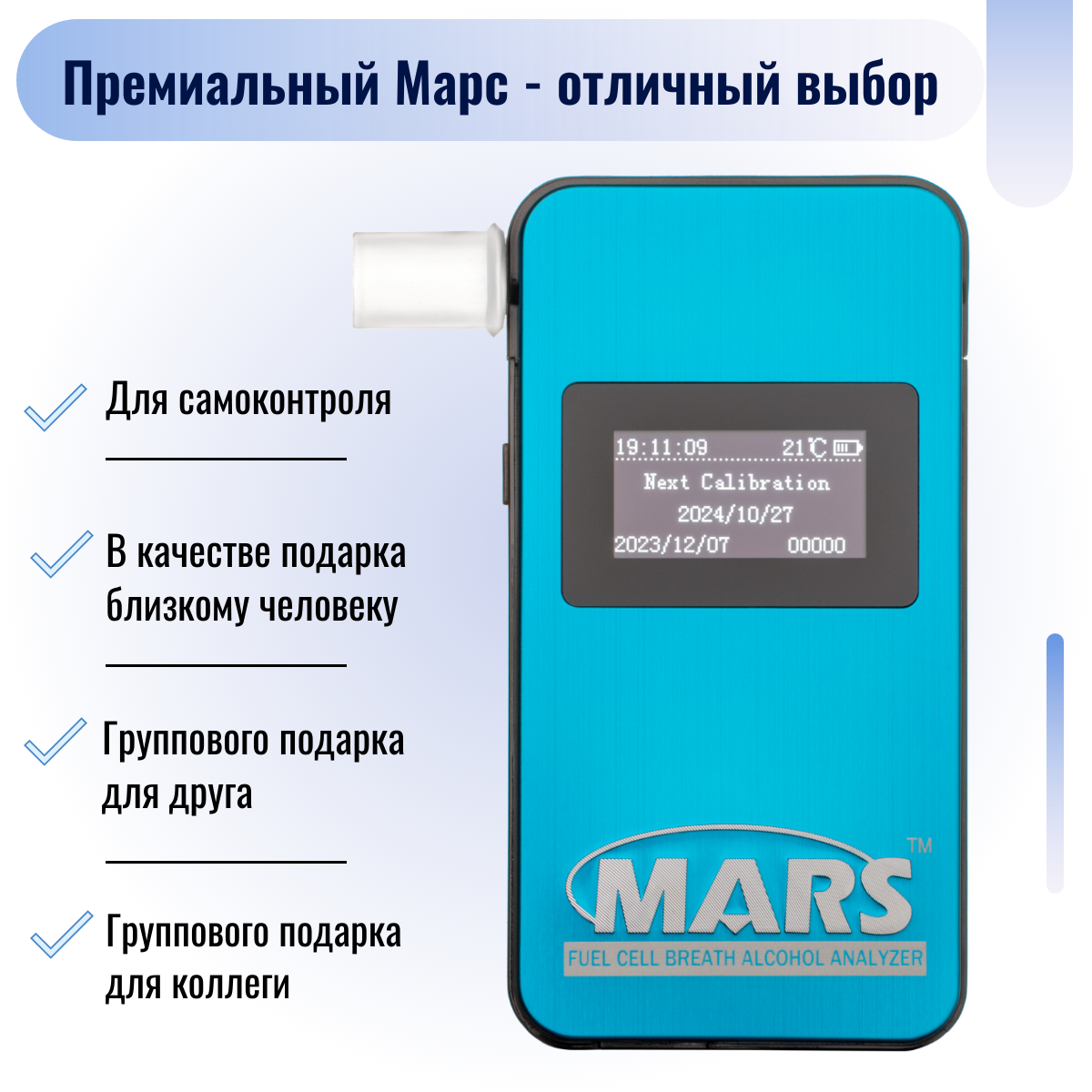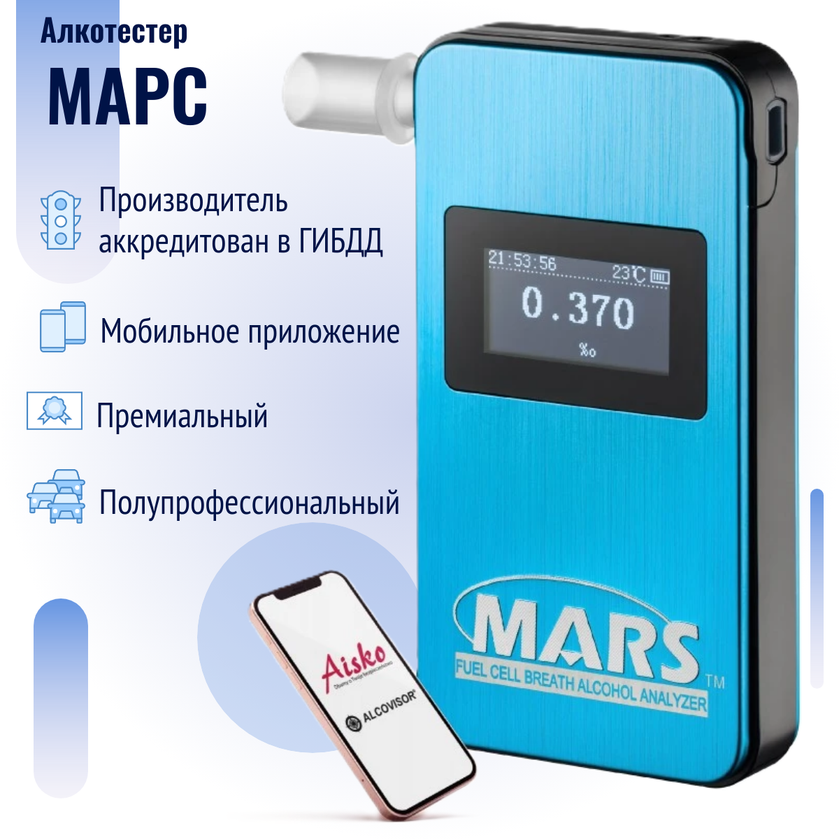 Алкотестер Марс (производитель аккредитован ГИБДД, номер в госреестре 63415-16)