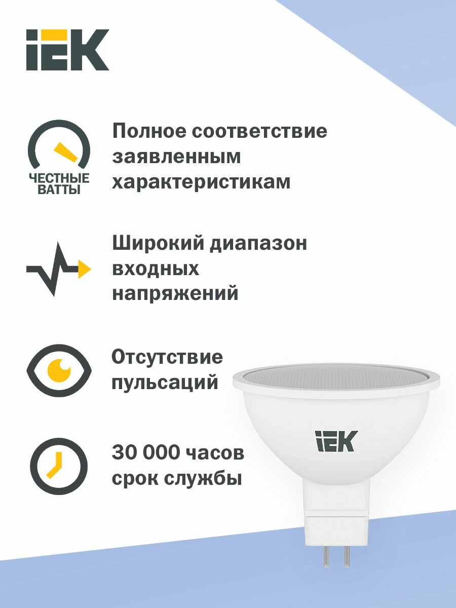 (16 шт.) Светодиодная лампочка IEK MR16 7Вт 230В 6500К GU5.3