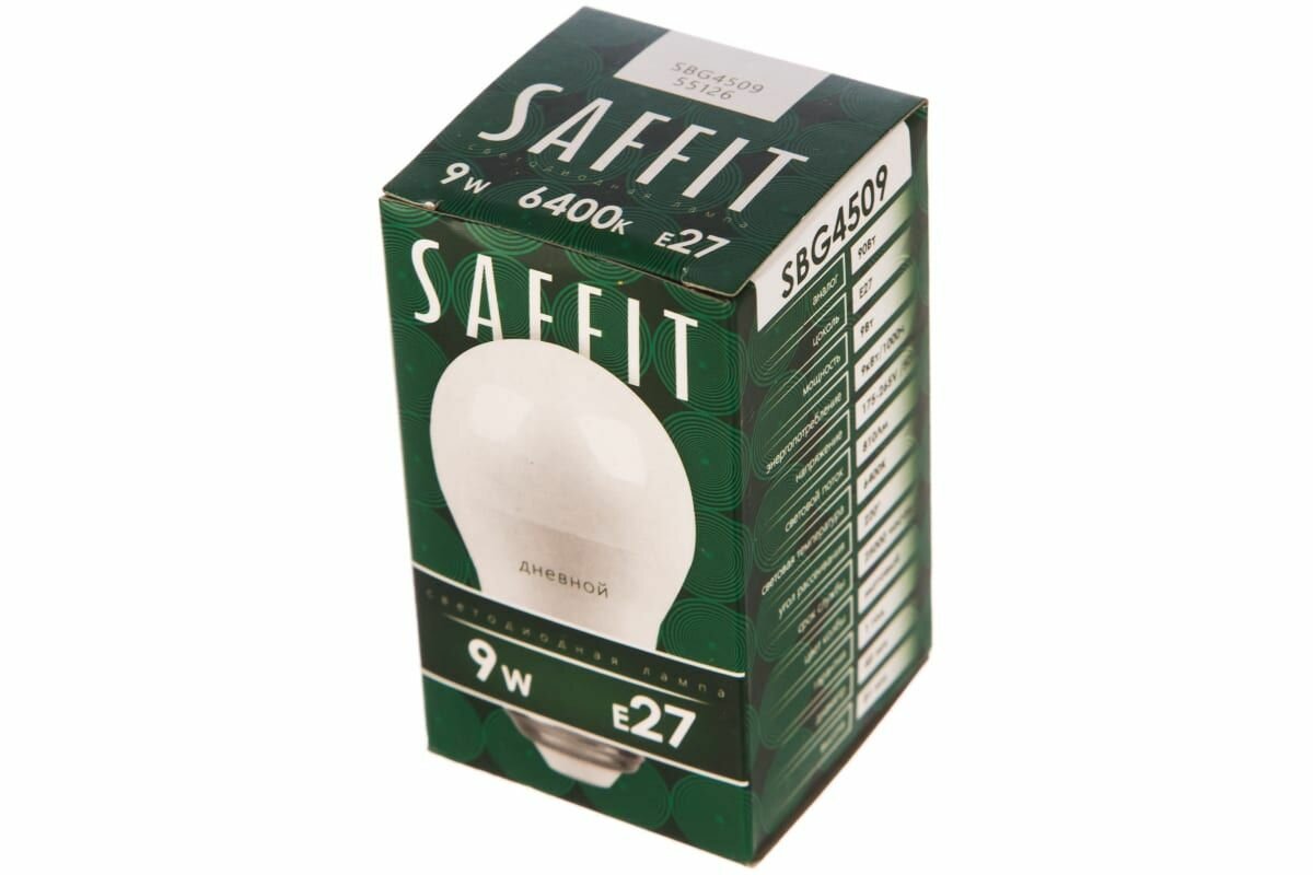 Saffit шар G45 E27 9W(810lm) 6400K 6K матовая, пластик 80x45 SBG4509 55126 (арт. 678024)