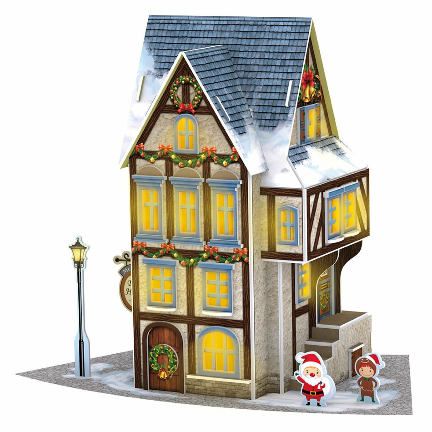 3D пазл Новогодний домик Таверна на горе Мур с LED подсветкой. Моя рождественская деревня CubicFun P804h