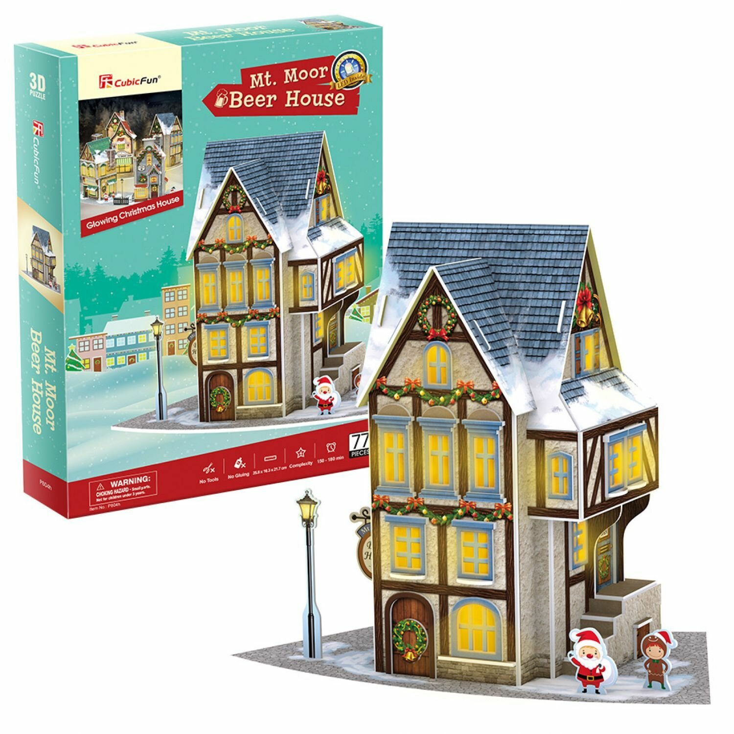 3D пазл CubicFun Новогодняя таверна с LED-подсветкой, 77 деталей