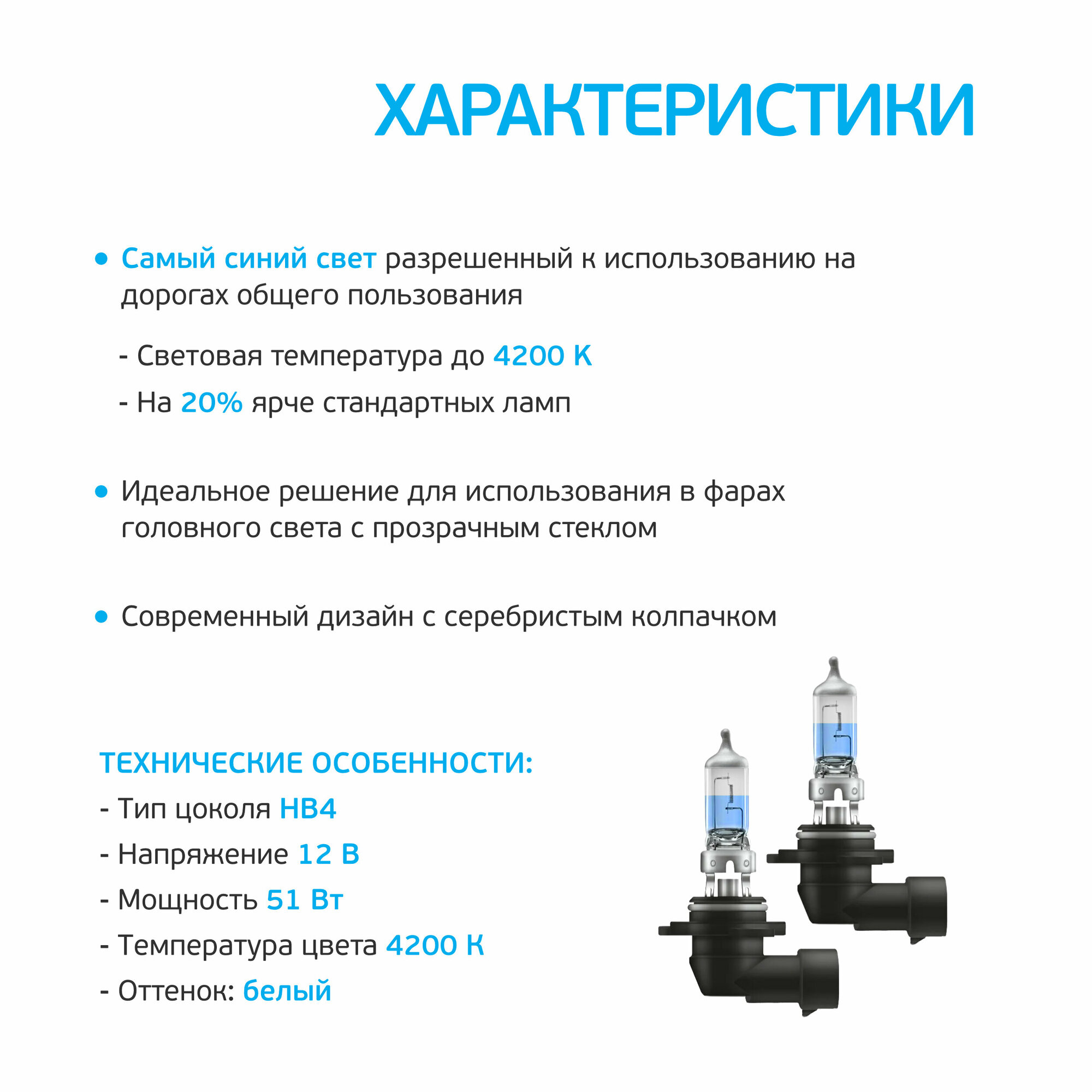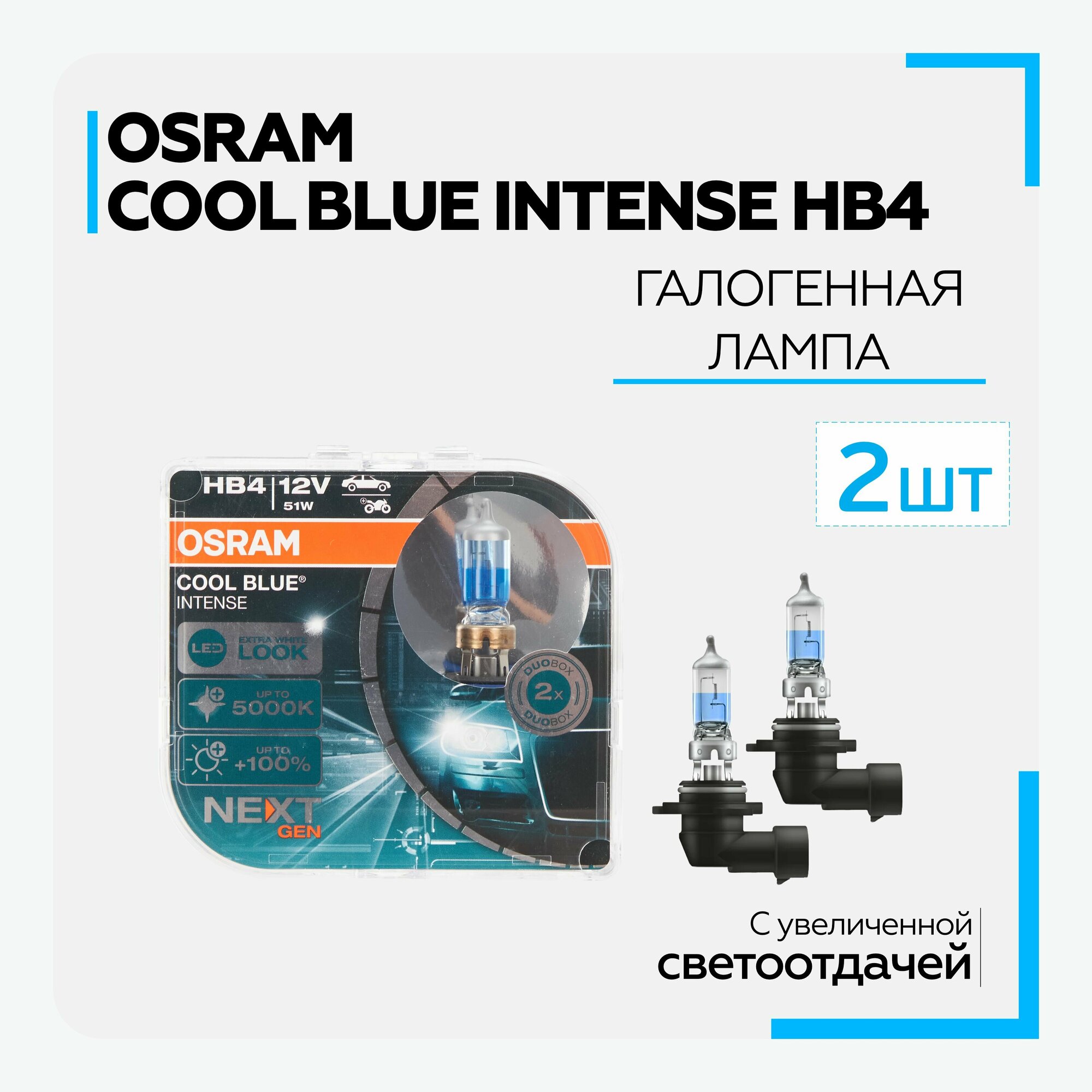 OSRAM 9006CBIHCB 9006CBI-HCB_к-кт ламп COOL BLUE INTENSE! 2шт. (HB4) 12V 51W P22d цвет. темп. 4200К\ 1шт