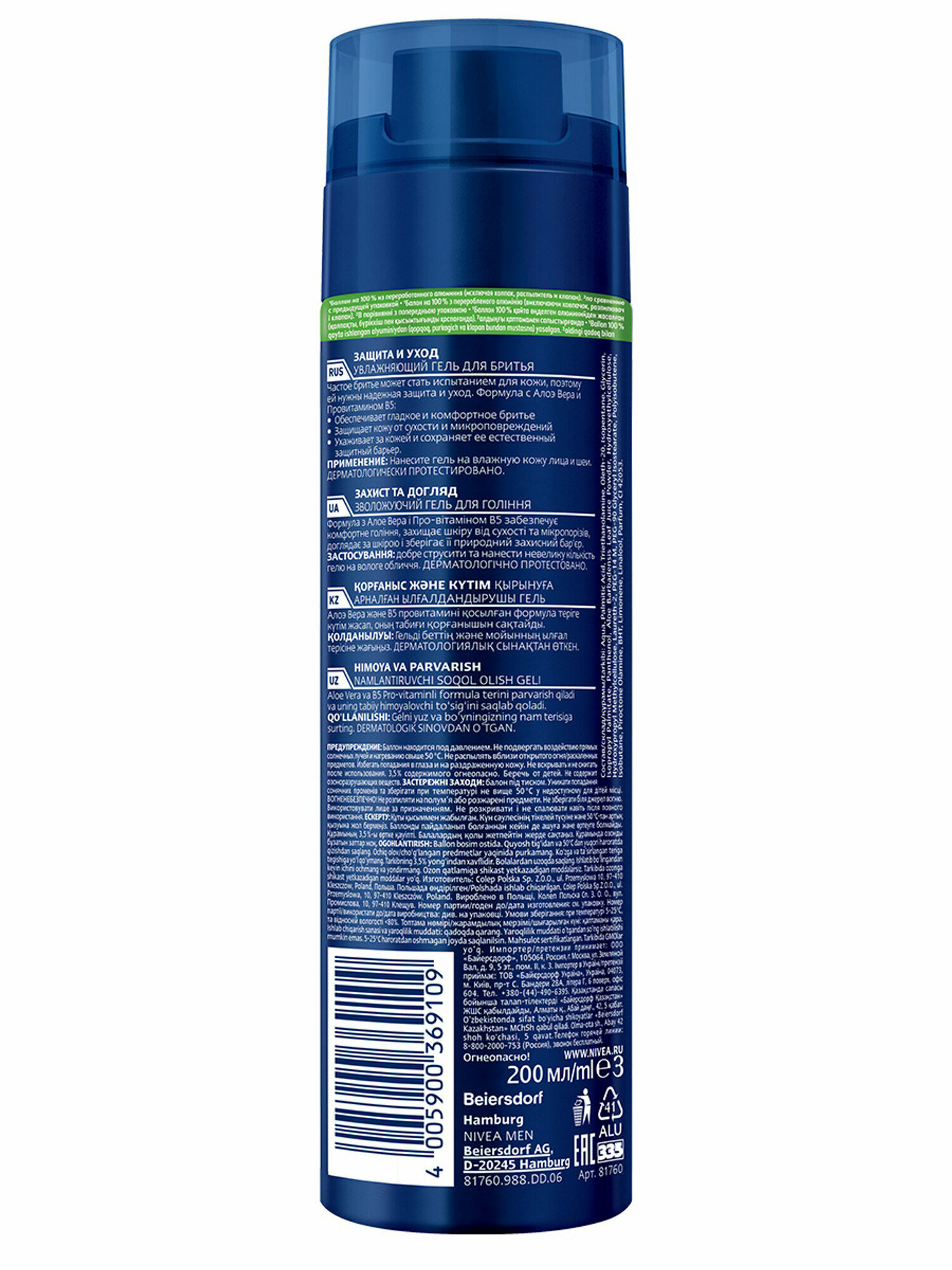 Гель д/бритья увлажняющий Nivea Men Защита и уход 200 мл 81760 1555425