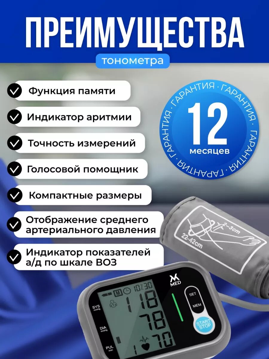 | Функции | адаптер питания в комплекте / голосовое оповещение / двойной метод измерения |