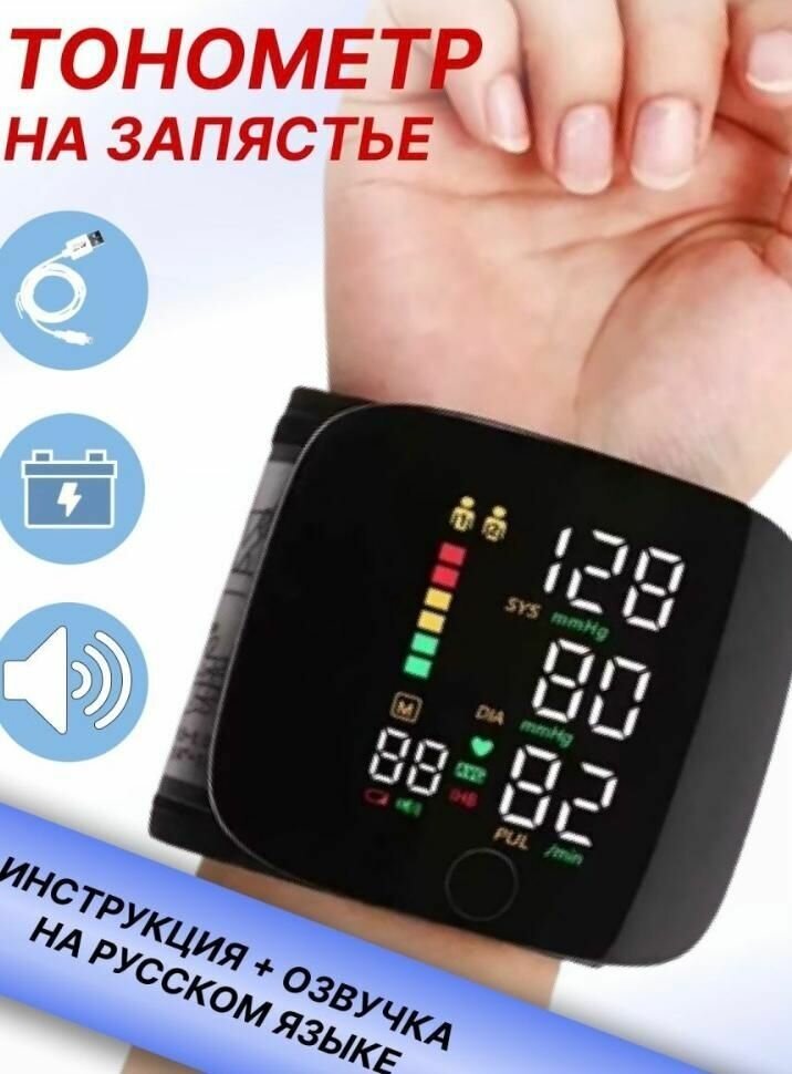 Тонометр на запястье/аппарат для измерения давления/тонометр с русским голосовым сопровождением интересное: