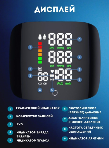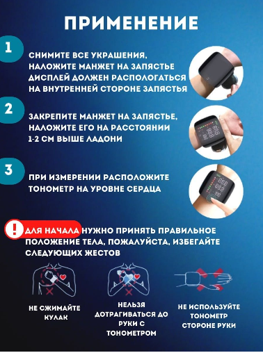 Тонометр на запястье с манжетой, черный / Тонометр для измерения давления с русским голосовым сопровождением интересное: