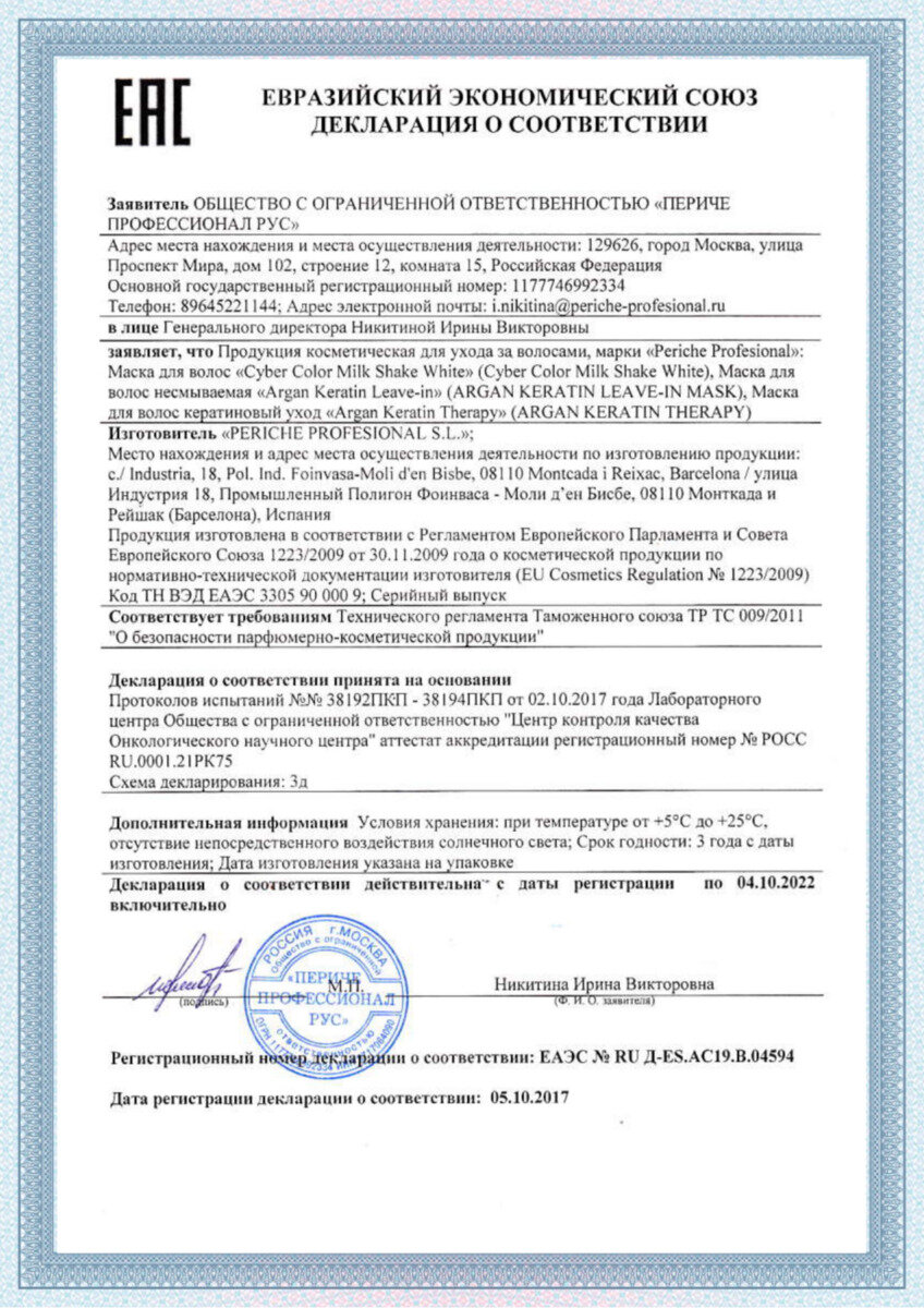 Купить PERICHE PROFESIONAL Несмываемая маска "Argan Keratin Leave-IN", 250 мл / Домашний уход