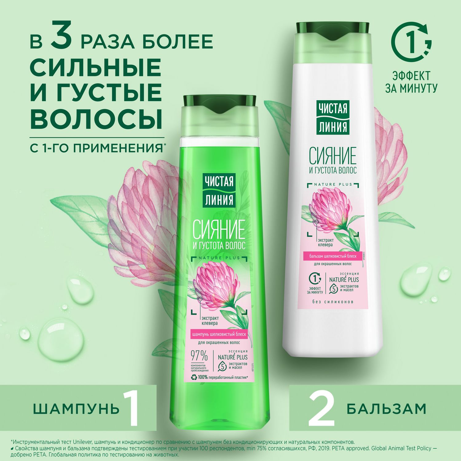 Чистая линия бальзам-ополаскиватель Шелковистый блеск для окрашенных волос Клевер, 230 мл