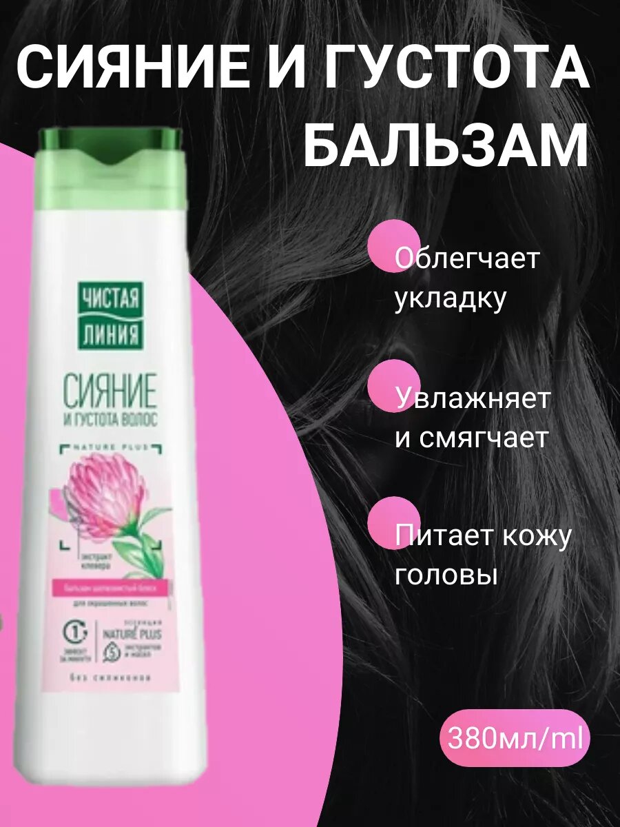 Чистая Линия бальзам-ополаскиватель Сияние и густота волос, Шелковистый блеск с экстрактом клевера 380 мл