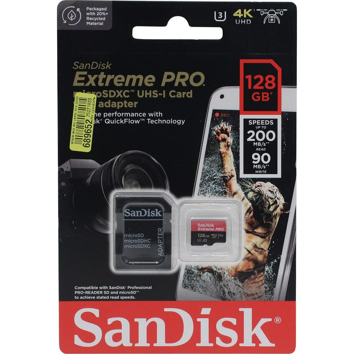 Карта памяти SanDisk Extreme Pro microSDXC 128GB UHS-I U3 V30, A2, R/W 200/90 МБ/с с адаптером