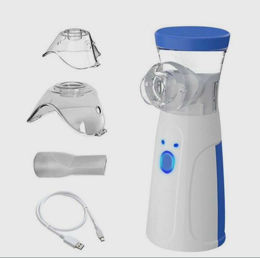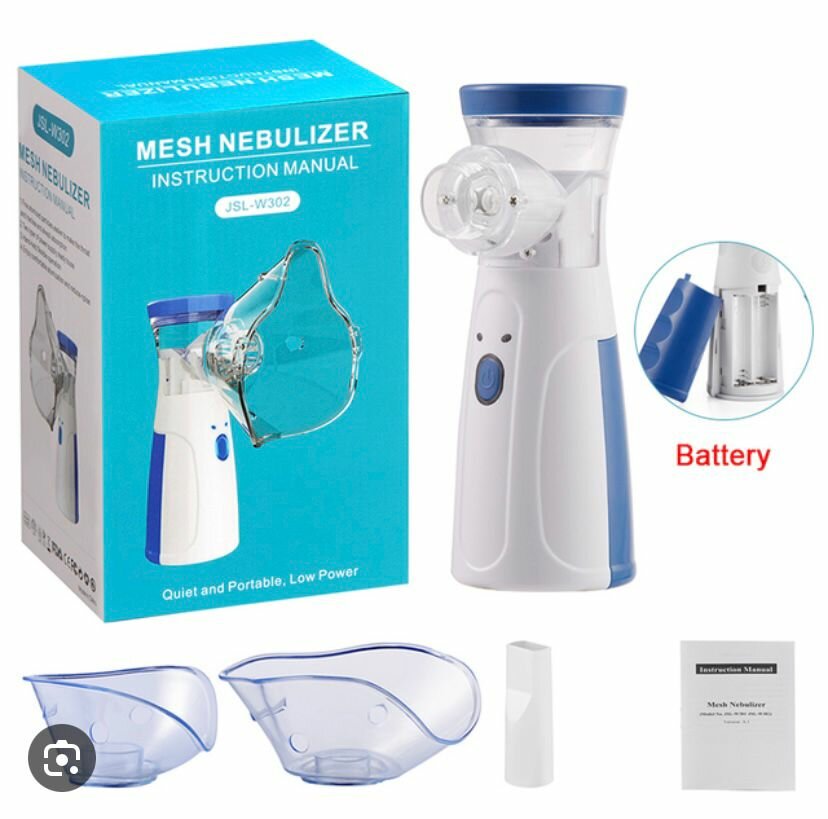 Ингалятор портативный бесшумный mesh небулайзер JSL-W302 для детей и взрослых с насадками для лечения заболеваний носа и горла, цвет белый с синим