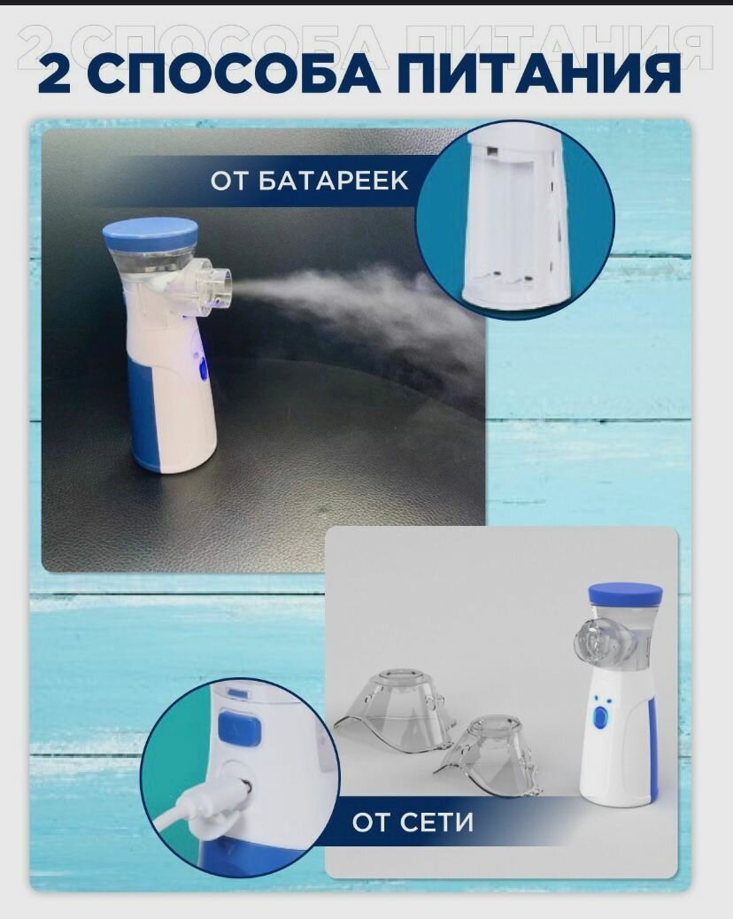 Купить Ингалятор mesh небулайзер для детей и взрослых/ Портативный бесшумный небулайзер с насадками/ Для лечения заболеваний носа и горла