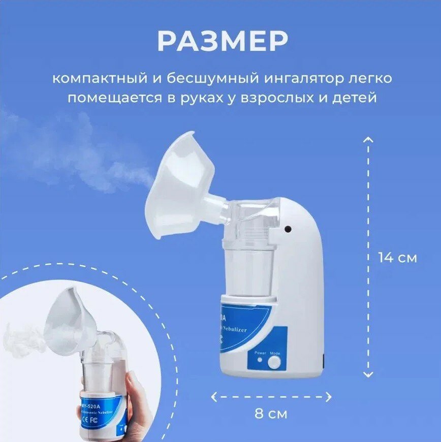 Ультразвуковой Ингалятор, Небулайзер портативный, карманный респиратор астмы, Ultrasonic Nebulizer "MY-520A" 2,4 МГц интересное: