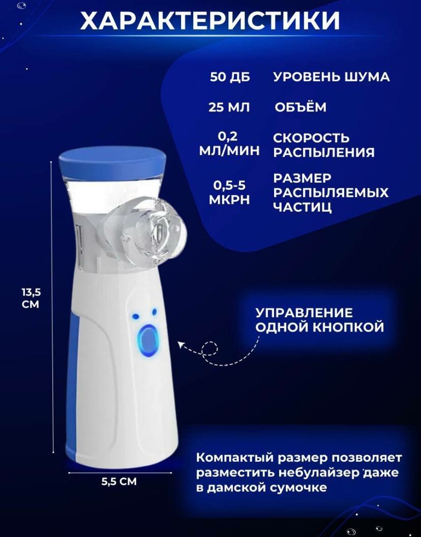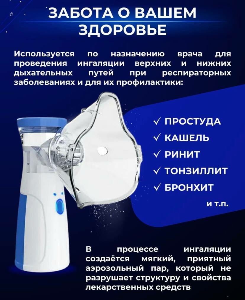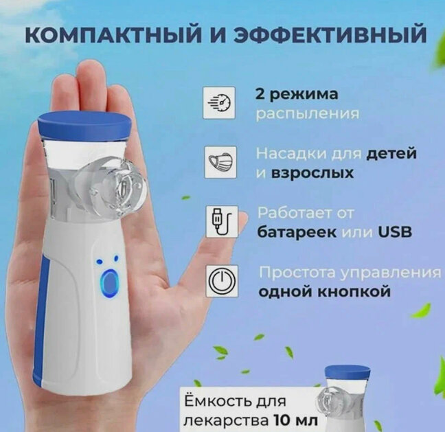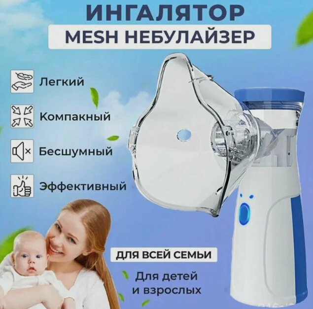 Ингалятор небулайзер Mesh для взрослых и детей/ Портативный ингалятор/ Бесшумный небулайзер с насадками интересное: