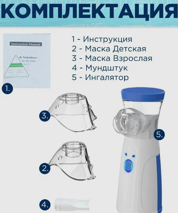 | Насадки в комплекте | маска взрослая / маска детская / мундштук |