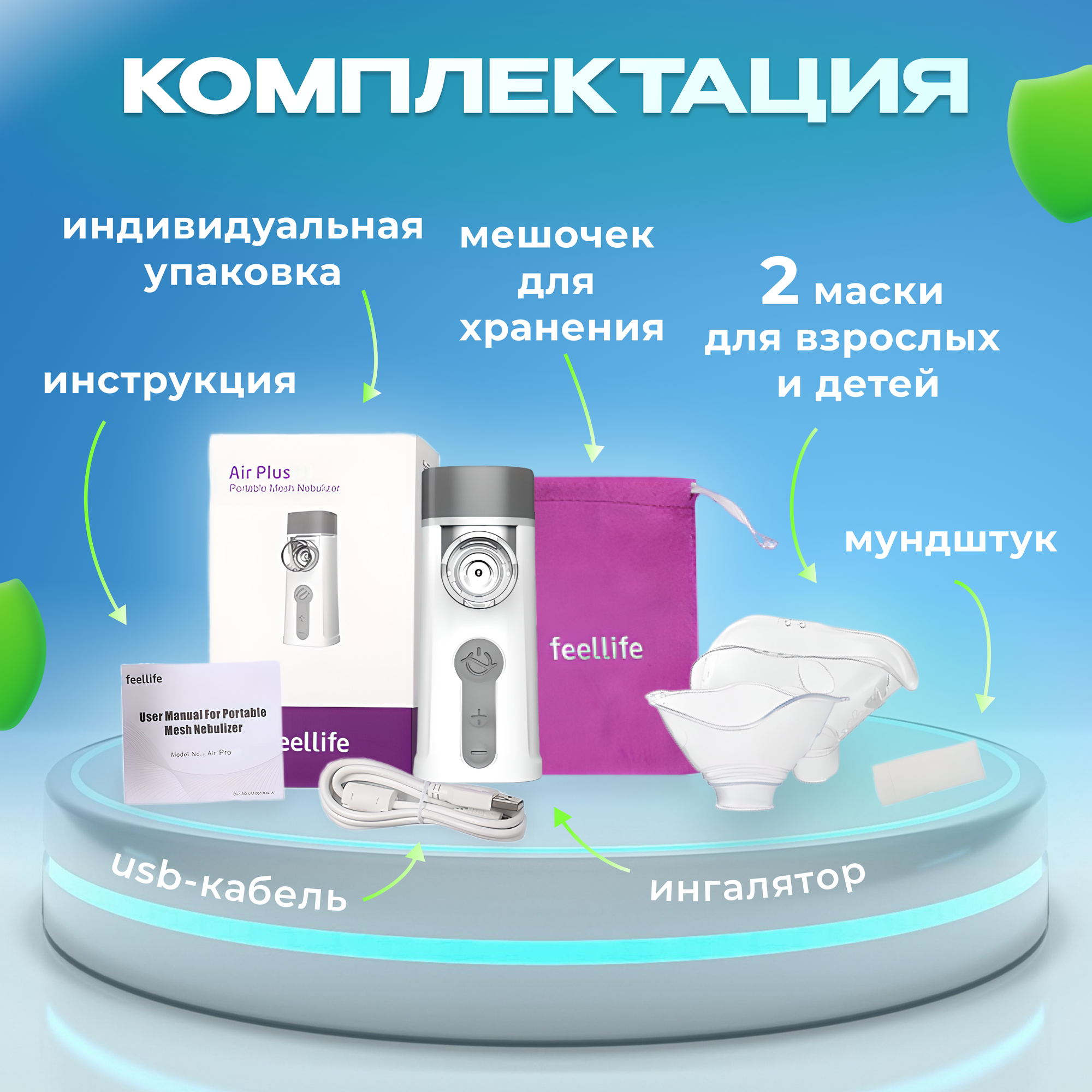 | Насадки в комплекте | маска взрослая / маска детская / мундштук |