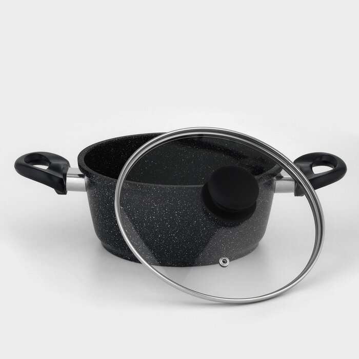 Кастрюля "Элит", 2 л, антипригарное покрытие, стеклянная крышка, пластиковые ручки, цвет чёрный