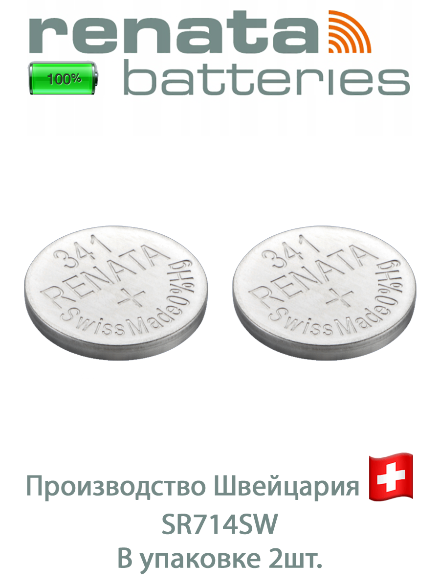 Батарейка Renata 341 2шт/Элемент питания рената 341 В10 (SR714SW)(без ртути) 2шт
