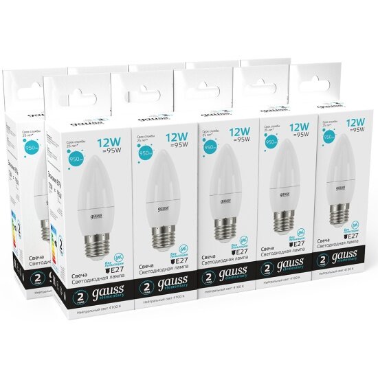 Светодиодная лампа Gauss Elementary 12W эквивалент 95W 4100K 950Лм E27 в форме свечи (комплект из 5 шт)
