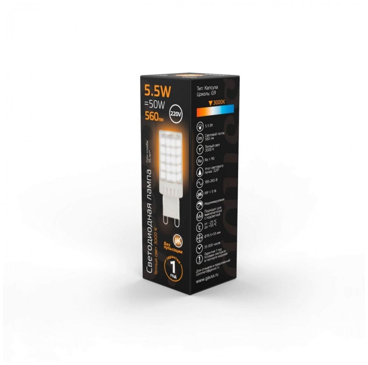 Gauss Лампа G9 AC185-265V 5,5W 560lm 4100K керамика LED 107009206 интересное:
