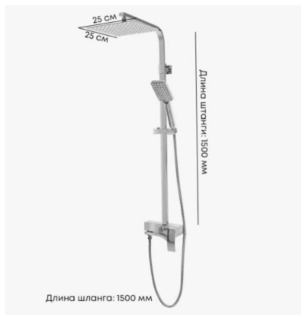 | Комплектация | стойка 1 шт / душ тропический 1 шт / смеситель 1 шт / лейка душевая 1 шт / шланг 1 шт / держатель для лейки 1 шт |