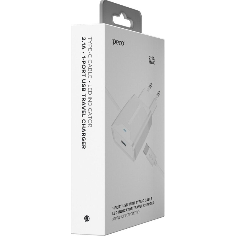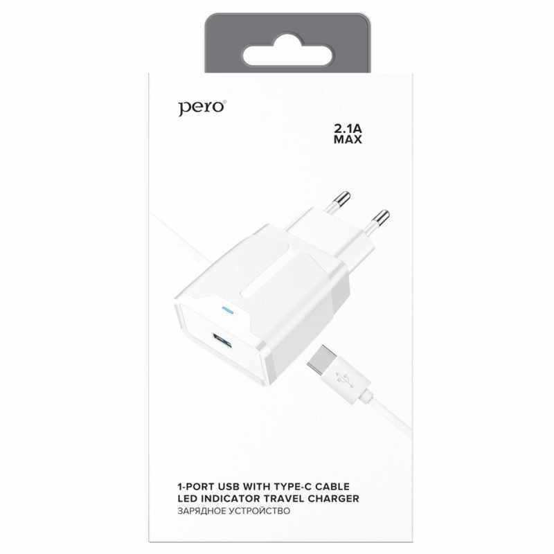 Купить Зарядное устройство сетевое PERO TC04 1USB 2.1A + TYPE-C CABLE белый