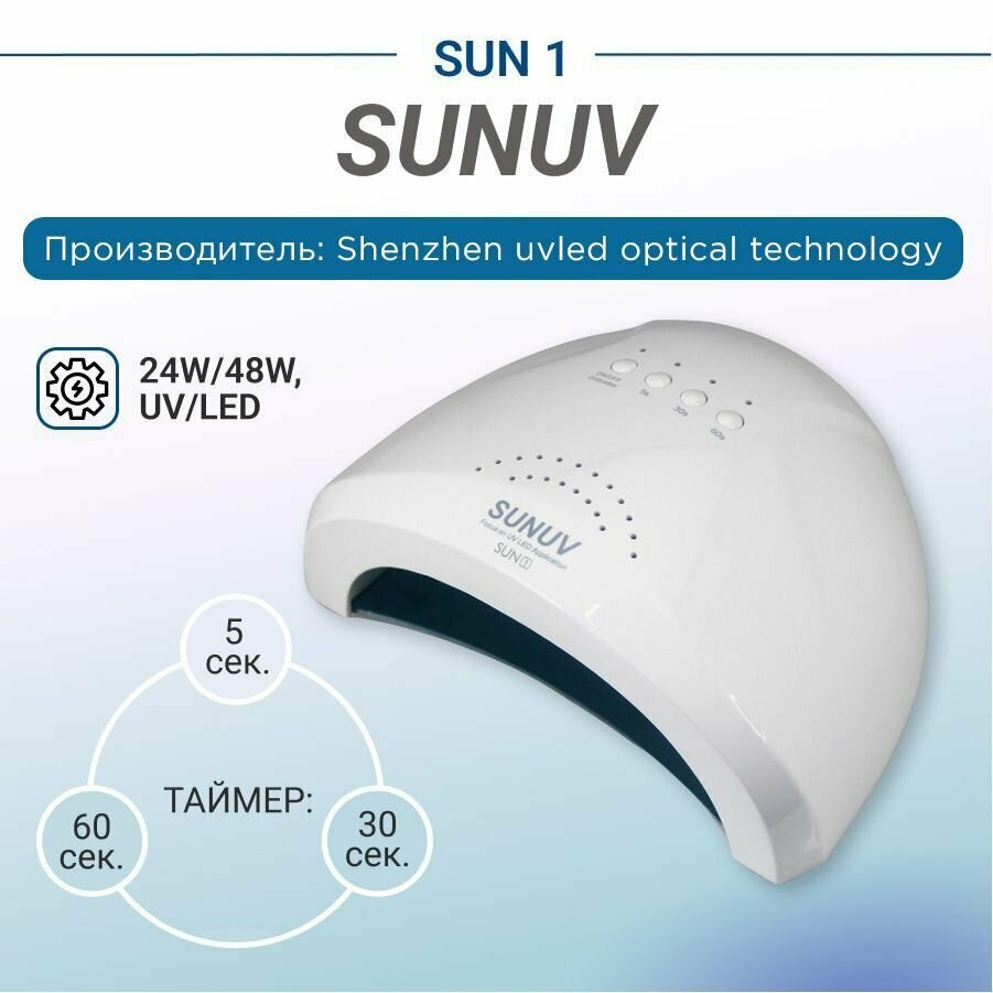 Лампа для маникюра SUNUV Sun 1 мощная гибридная уф лэд для ногтей и гель-лака, белая, 48W