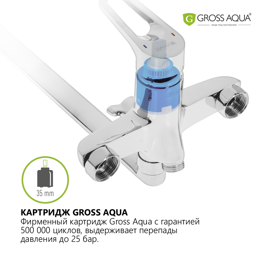 Смеситель для ванны и душа с длинным поворотным изливом Gross Aqua Delta, латунь, хром, 7244268C-35L(F). интересное: