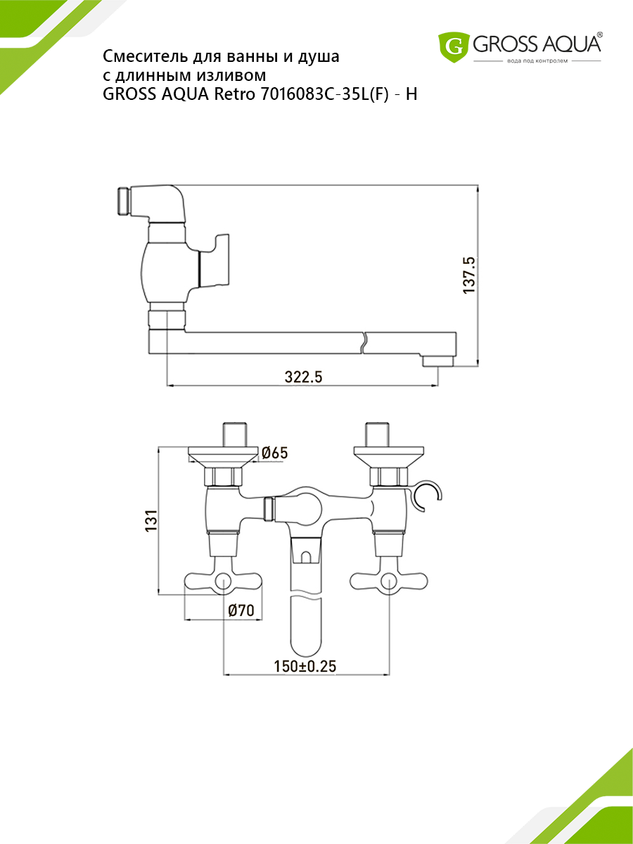 Смеситель для ванны и душа с длинным поворотным изливом Gross Aqua Retro, латунь, хром, 7016083С-35L(F)-H. интересное:
