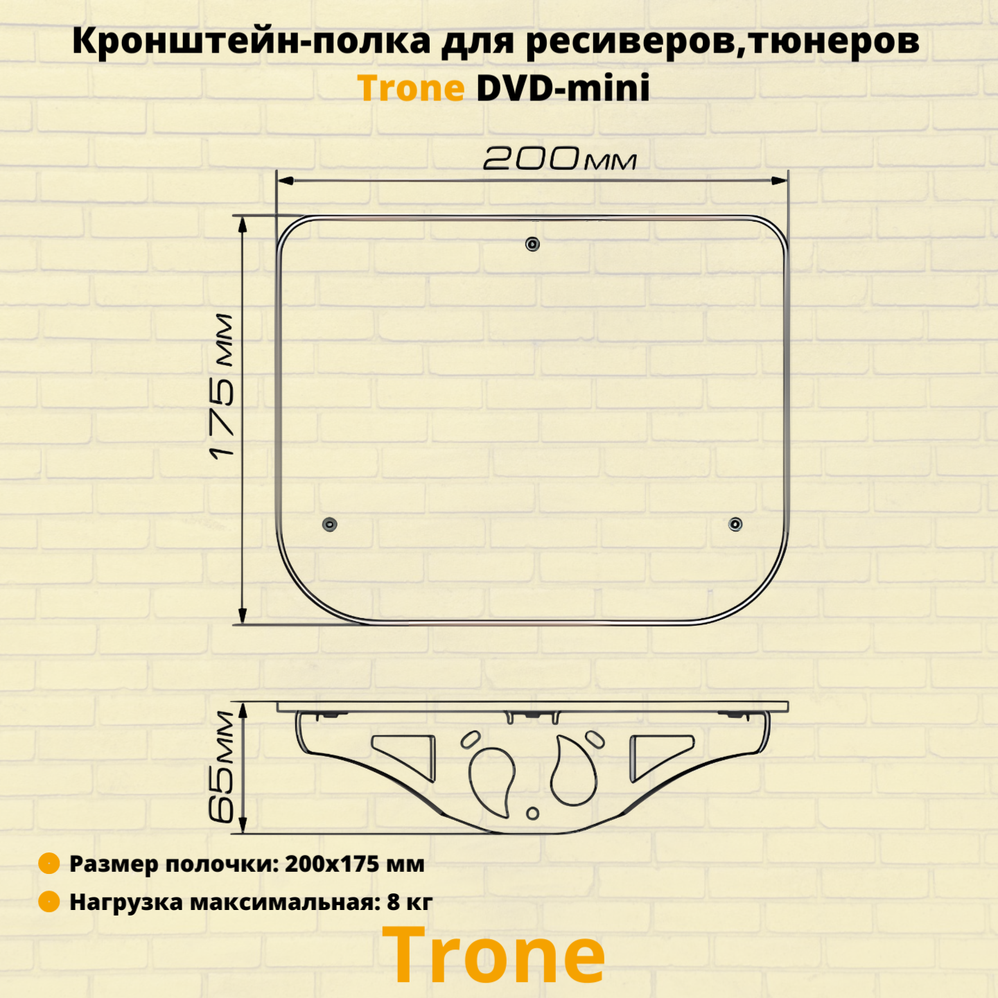 Кронштейн для телевизионных приставок Trone DVD-mini настенная полка до 8 кг 200*175мм - чёрный