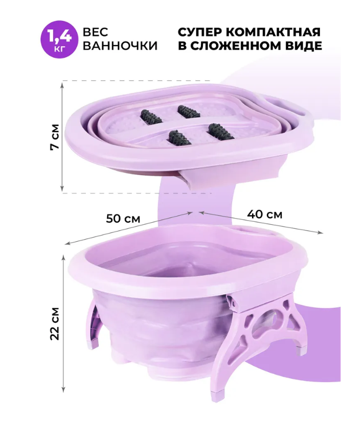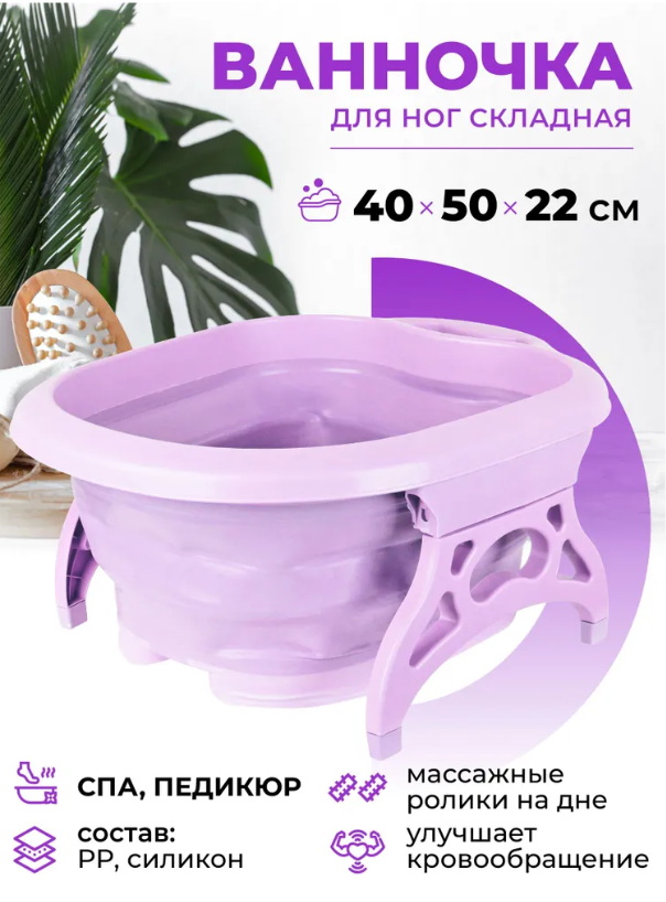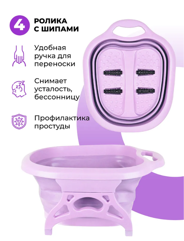 Ванночка для ног складная с массажными роликами, фиолетовая интересное: