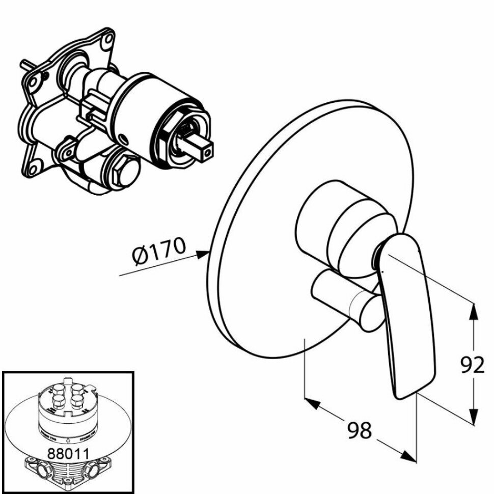 Лицевая часть встраиваемого смесителя Kludi Balance, арт. 526500575, 2 функции