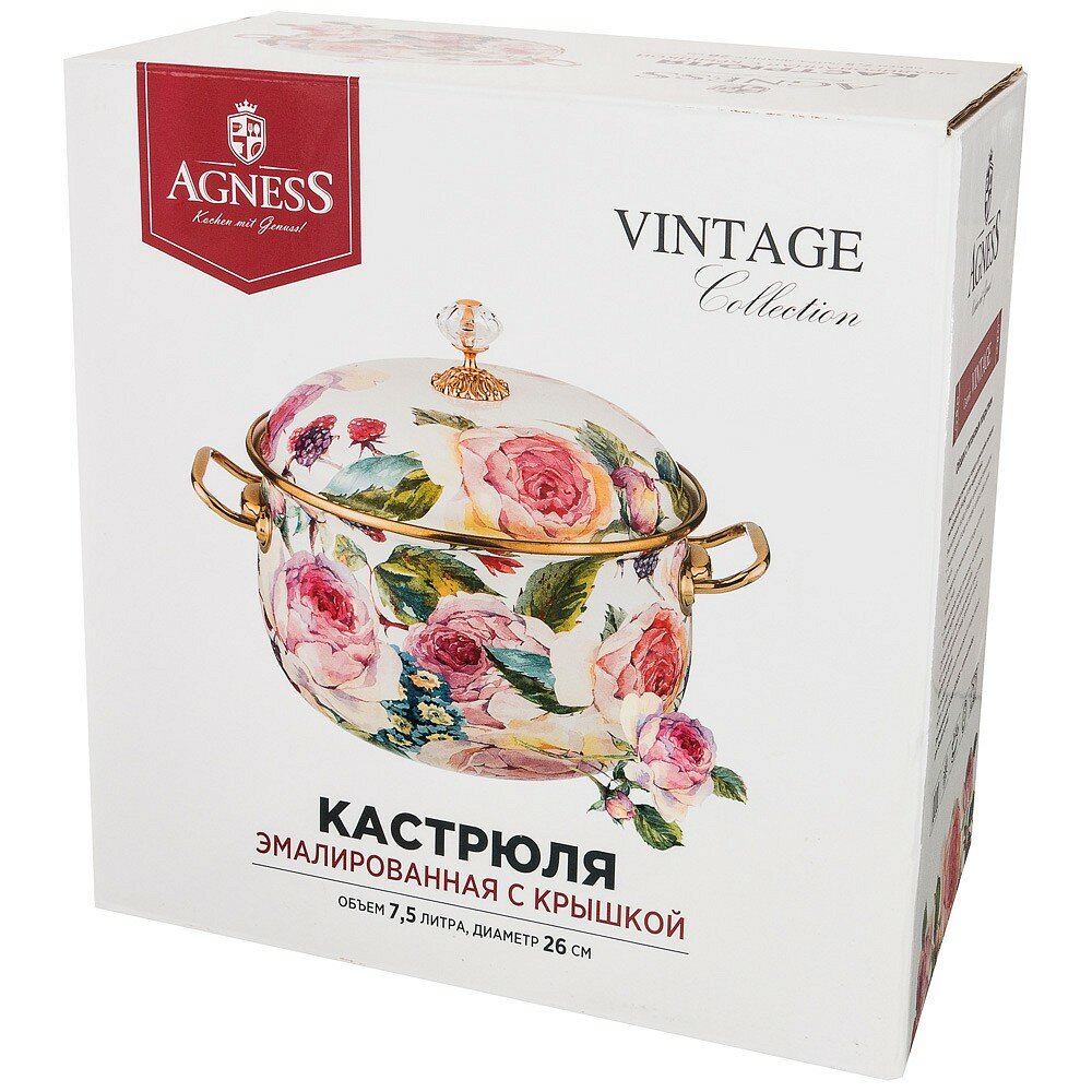 Купить Кастрюля AGNESS эмалированная, серия винтаж, 26СМ / 7,5Л подходит для индукцион.плит