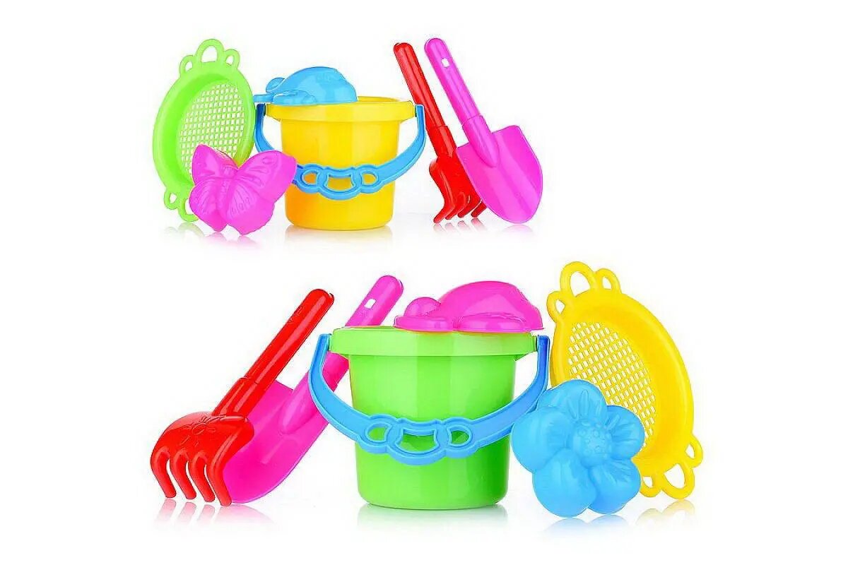 Набор № 112 (ведро 0,8 л, совок 19 см, грабли 19 см, 2 формочки) интересное:
