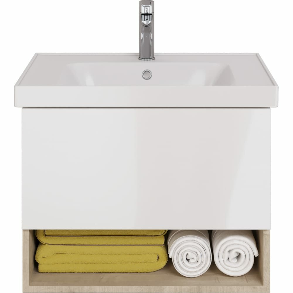 Тумба под раковину Dreja Perfecto 70 с ящиком, дуб эврика/белый глянец (99.0812)