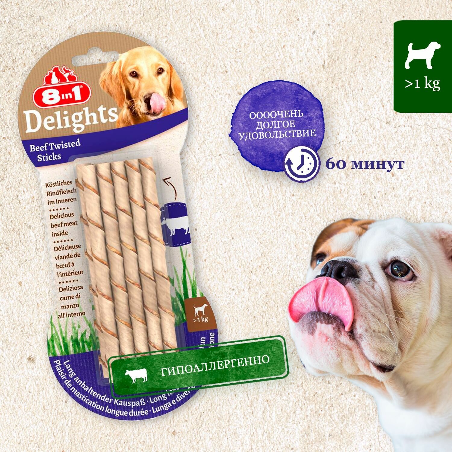 Лакомство 8IN1 Delights Beef Twisted Sticks 10шт., с говядиной для собак интересное: